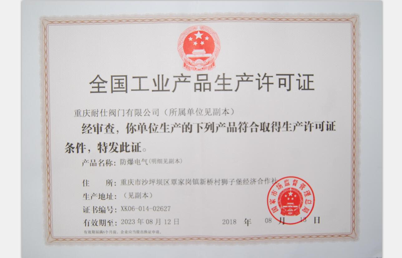 全国工业产品生产许可证书